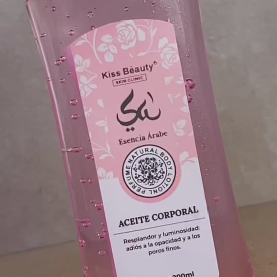 Envuelve tu cuerpo en un velo de luminosidad con el exquisito Aceite Corporal Kiss Beauty de Esencia Árabe. Su fórmula ligera y sedosa, enriquecida con esencias naturales, aporta hidratación intensa mientras deja tu piel suave, radiante y visiblemente más uniforme.