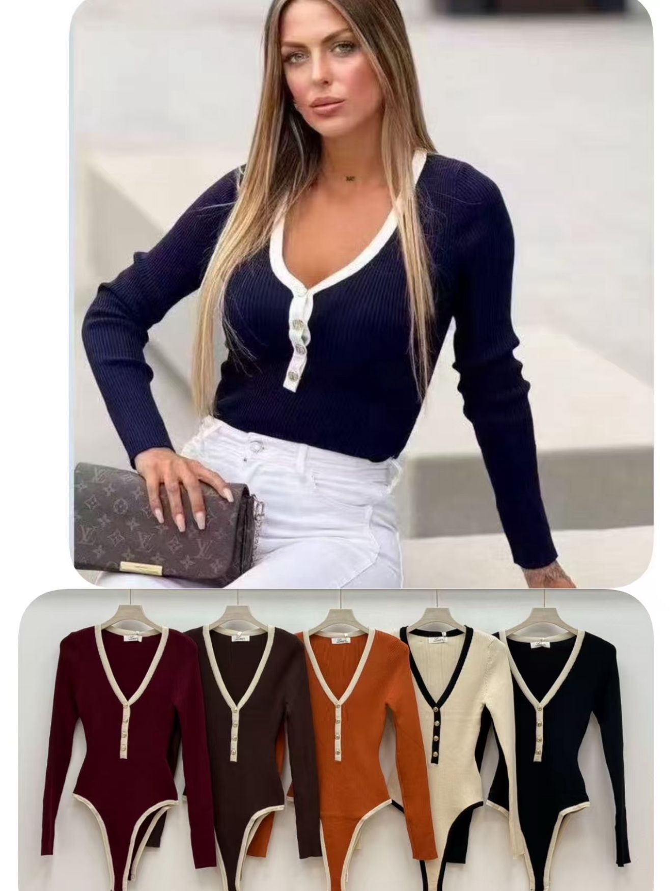Palabras clave sugeridas: body canalé mujer, body elegante, body old money, body con botones, body cuello pico, body ajustado manga larga, body clásico.