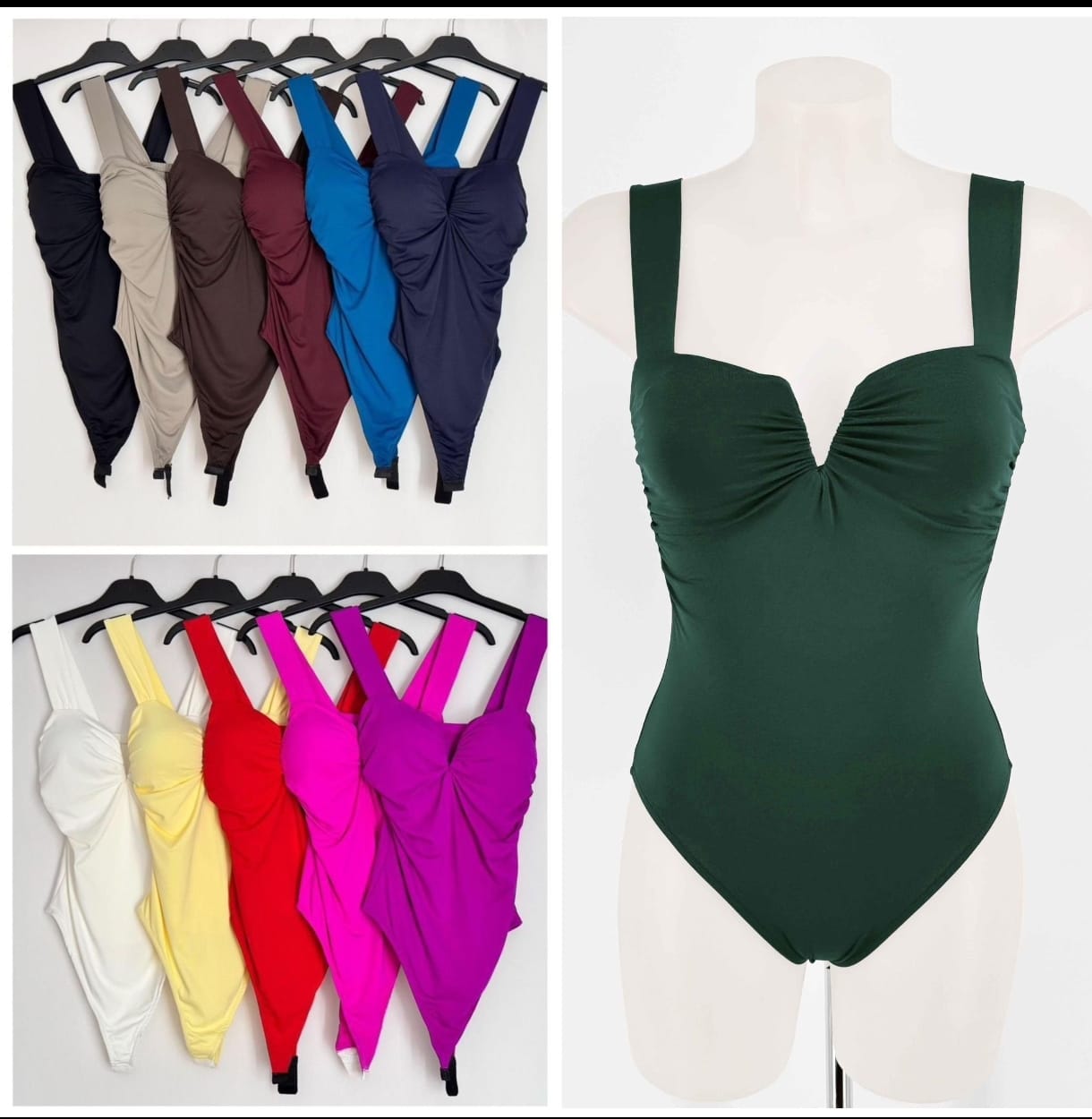 Body satinado de escote pronunciado y tiras anchas. Realza el pecho y hace una figura preciosa.