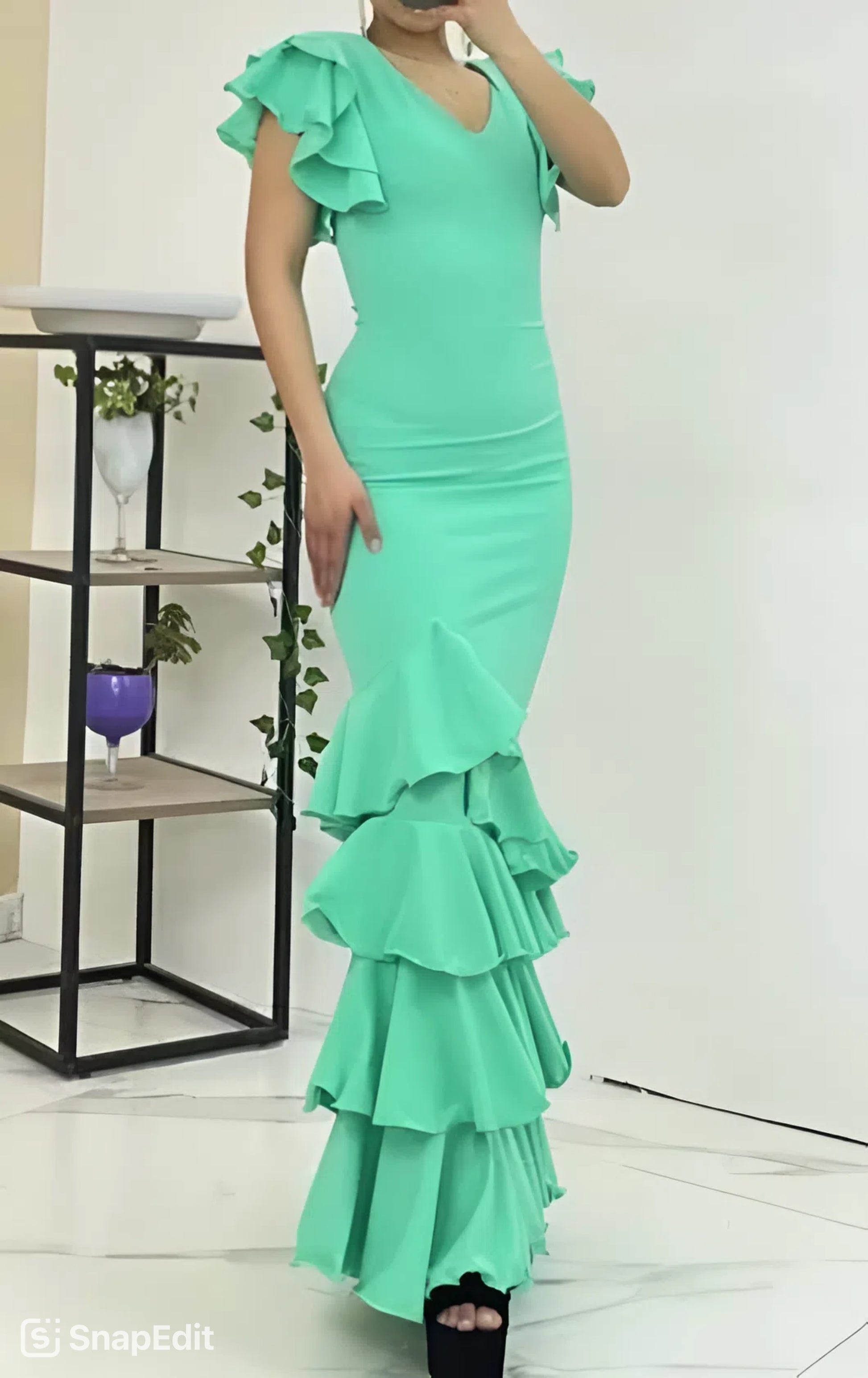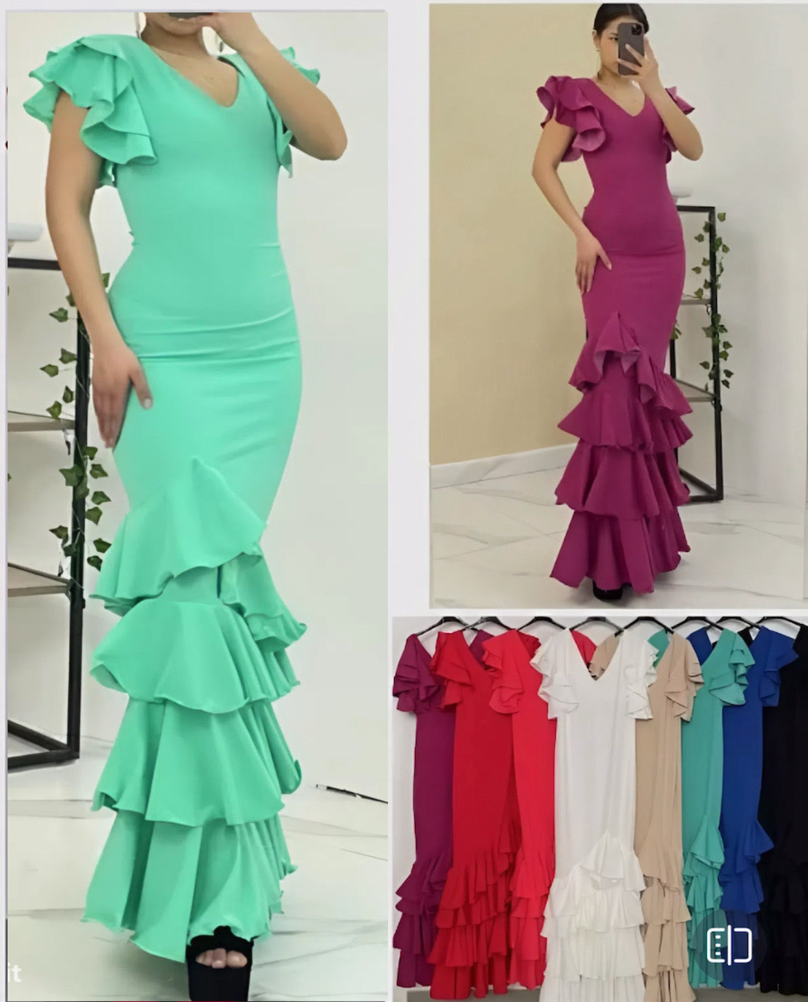 Este hermoso modelo tradicional destaca por su escote en pico, su preciosa falda adornada por hermosos volantes y la ausencia de mangas. Nuestro modelo más vendido ahora más cómodo y fresco. Confeccionada en un tejido cómodo y fluido.