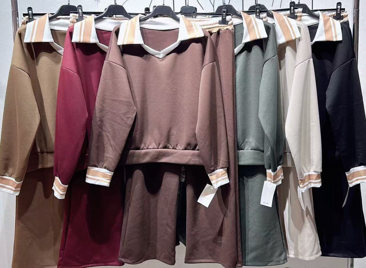 Conjunto deportivo de pantalón y sudadera con cuello de polo.