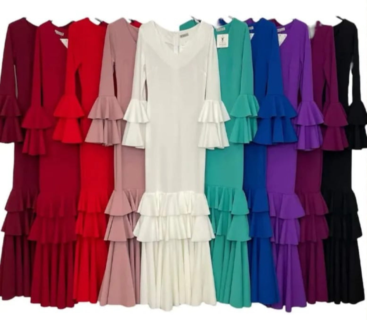 Un diseño sofisticado que realza la figura con elegancia y estilo. Este traje de flamenca destaca por su escote en pico, mangas largas con volantes abiertos en cascada y una falda de tres volantes que aporta movimiento y presencia. Su corte entallado en tejido elástico realza la silueta sin perder comodidad.